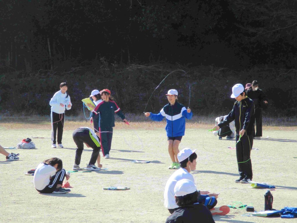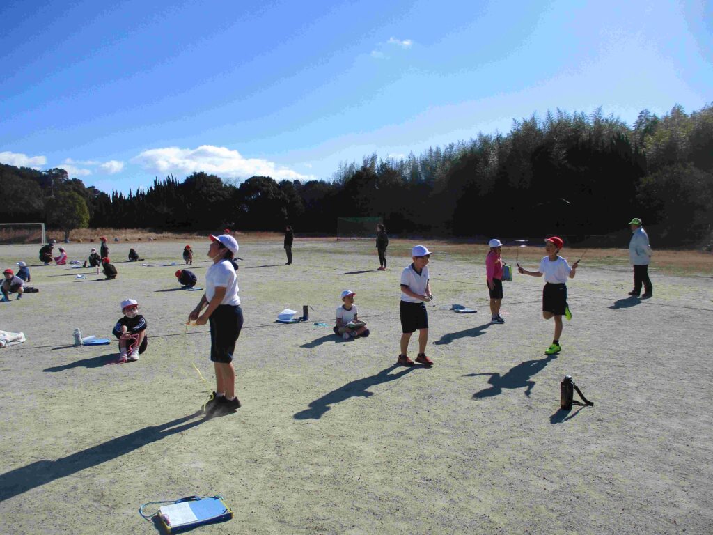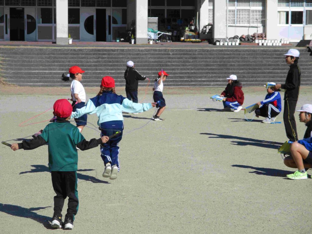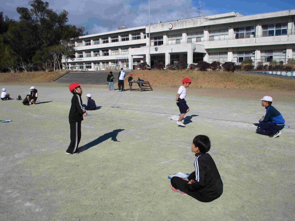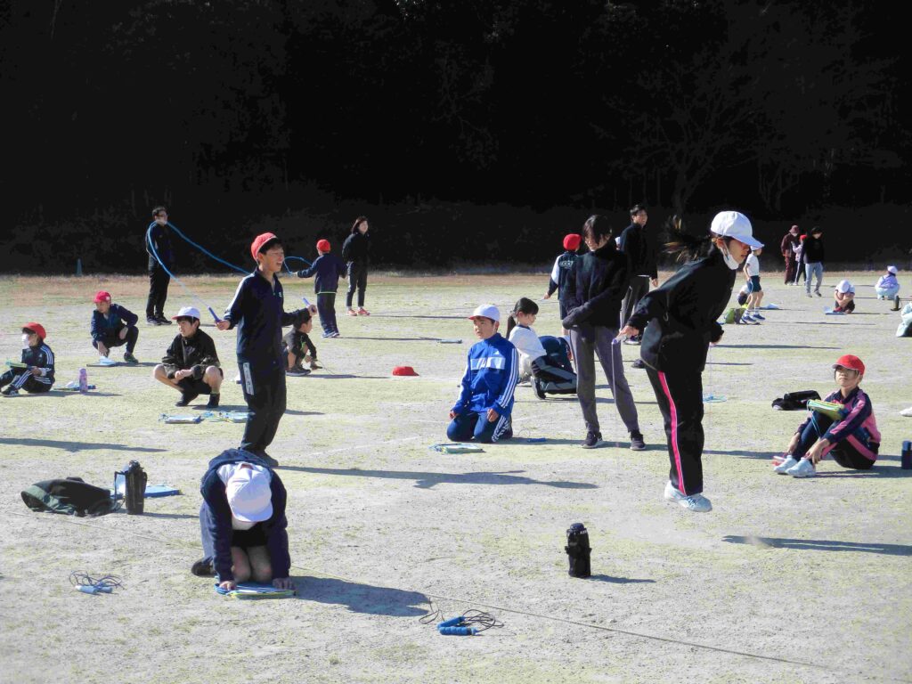 今日はなわとび週間の最終日。日頃の練習の成果を発揮するなわとび大会を開催しました。検定表に示された各技の合格回数を目指し、レッツ トライ!縄を足にひかけても何度もやっていくうちにできるようになる子がたくさんいました。また、回数を数えたり、応援をしたりと見守る子の支えもすばらしかったです。本当によくがんばりました。