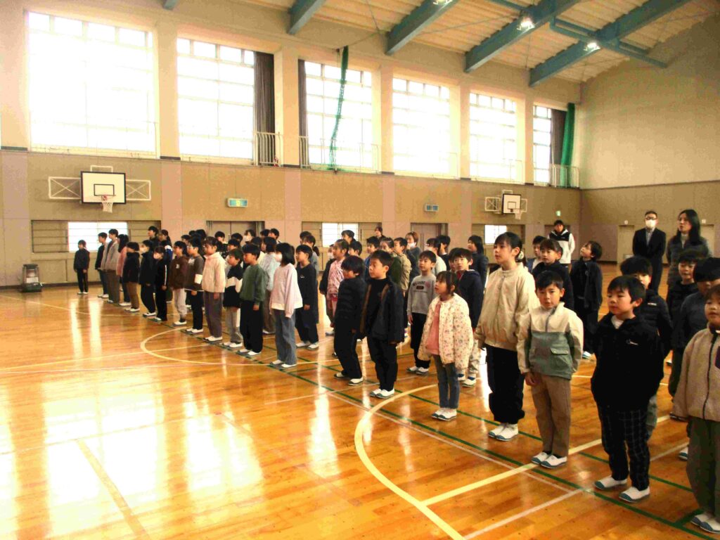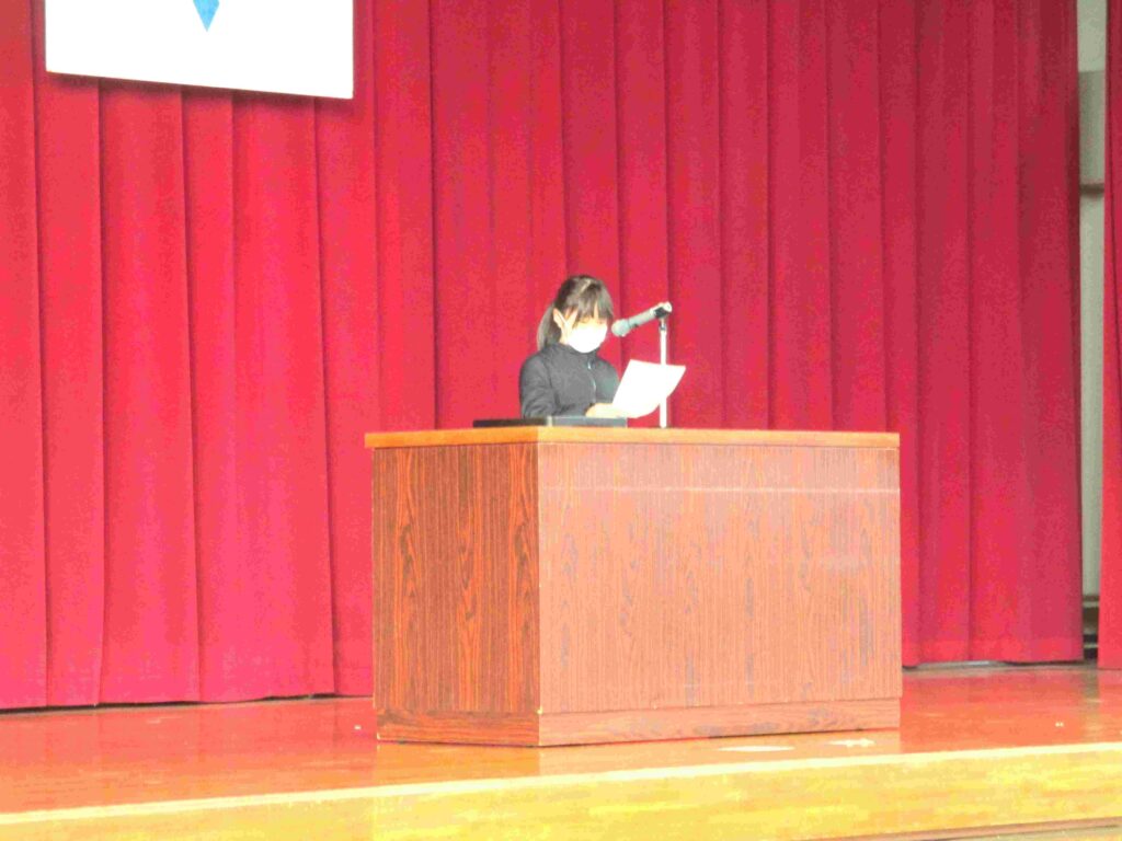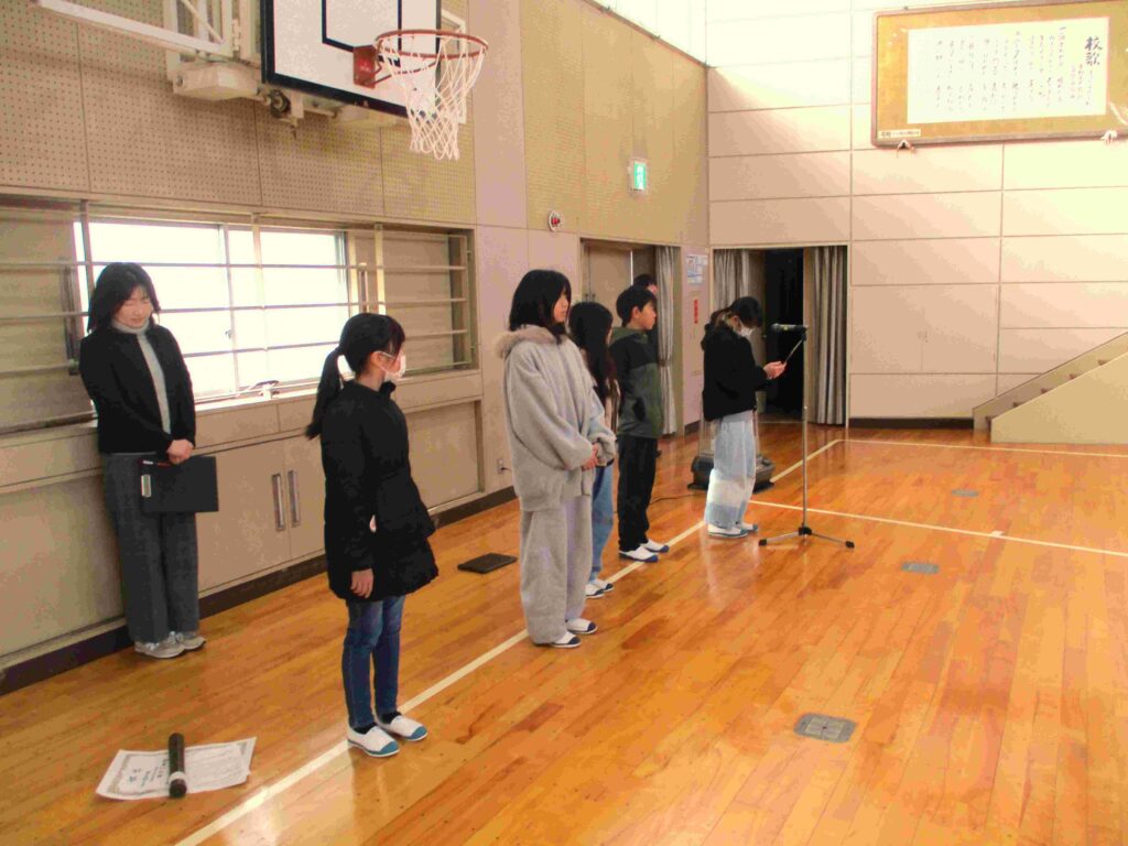 さて、朝会では校長先生のお話(この1年やり残したことがないように 自分も他者も幸せにできる人へ)につづいて、各委員会からの代表者が連絡を伝え、今月の歌を歌いました。今日も一日がんばります!