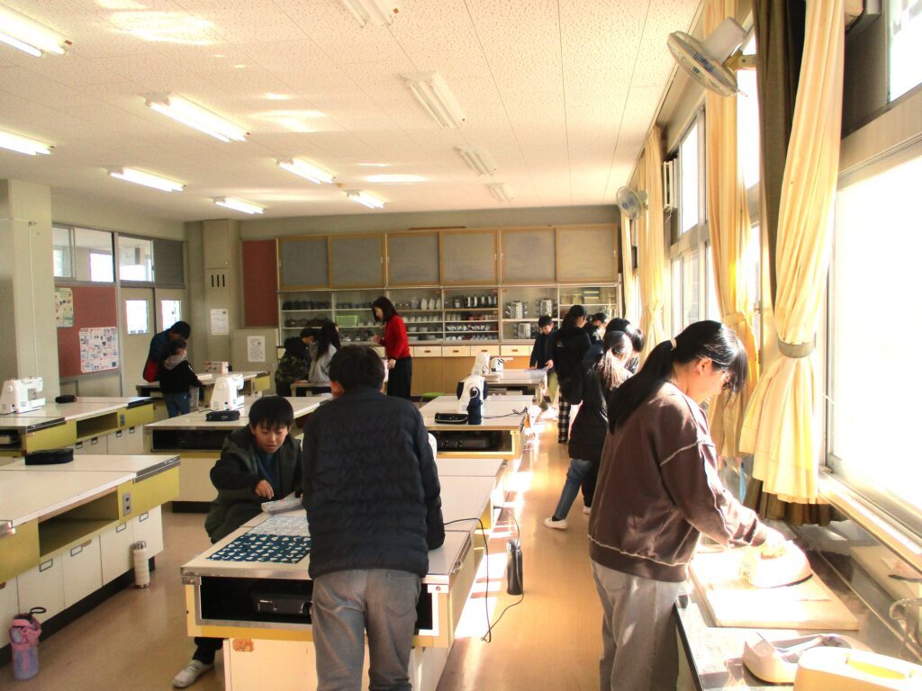 5年生家庭科では、手ぬぐいを使った「あずま袋」作りにチャレンジしていました。手ぬぐいを裏返し三つ折りに準備するとアイロンがけ、ミシンで縁を縫い始めていました。出来上がりが楽しみです。