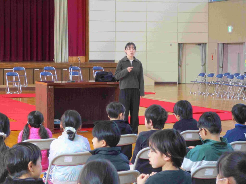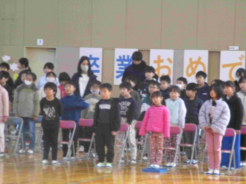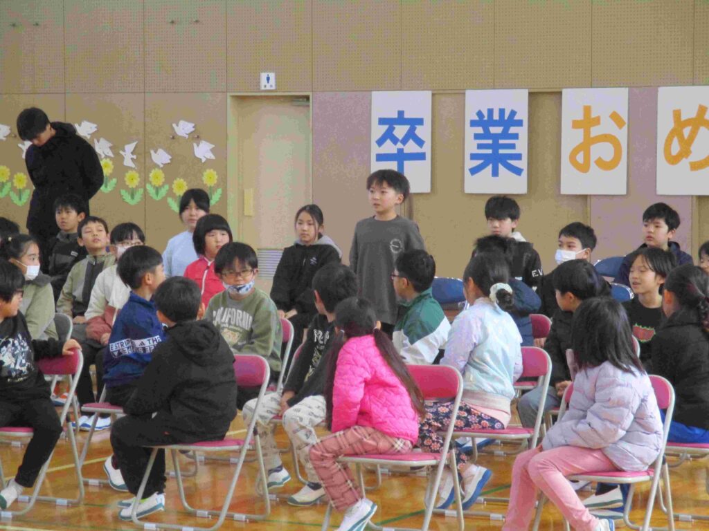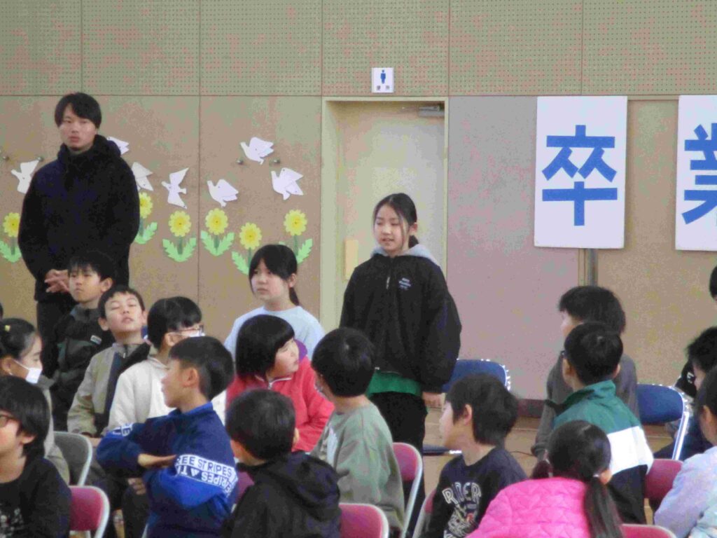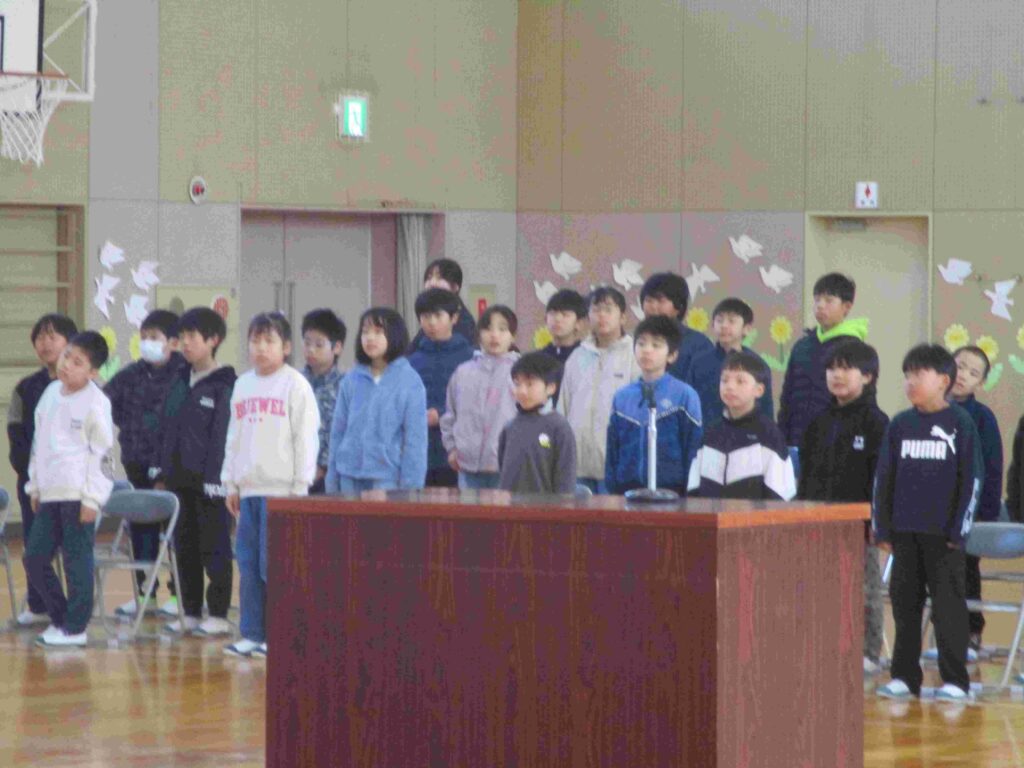 1~5年生が卒業式の歌練習をしました。音楽担当の先生から、「心を込めた歌い方」「歌い方のイメージ」を聞いていざ、練習へ。すると歌に変化が出始めてきました。また、5年生児童が卒業式で大切にしたいことを発表する場面もありました。「所作や歌に心を込める」大切にしていきます。