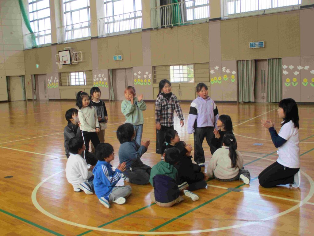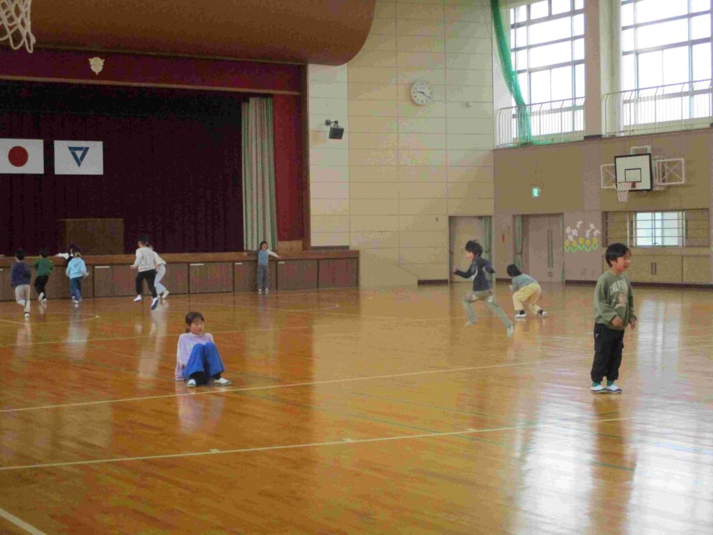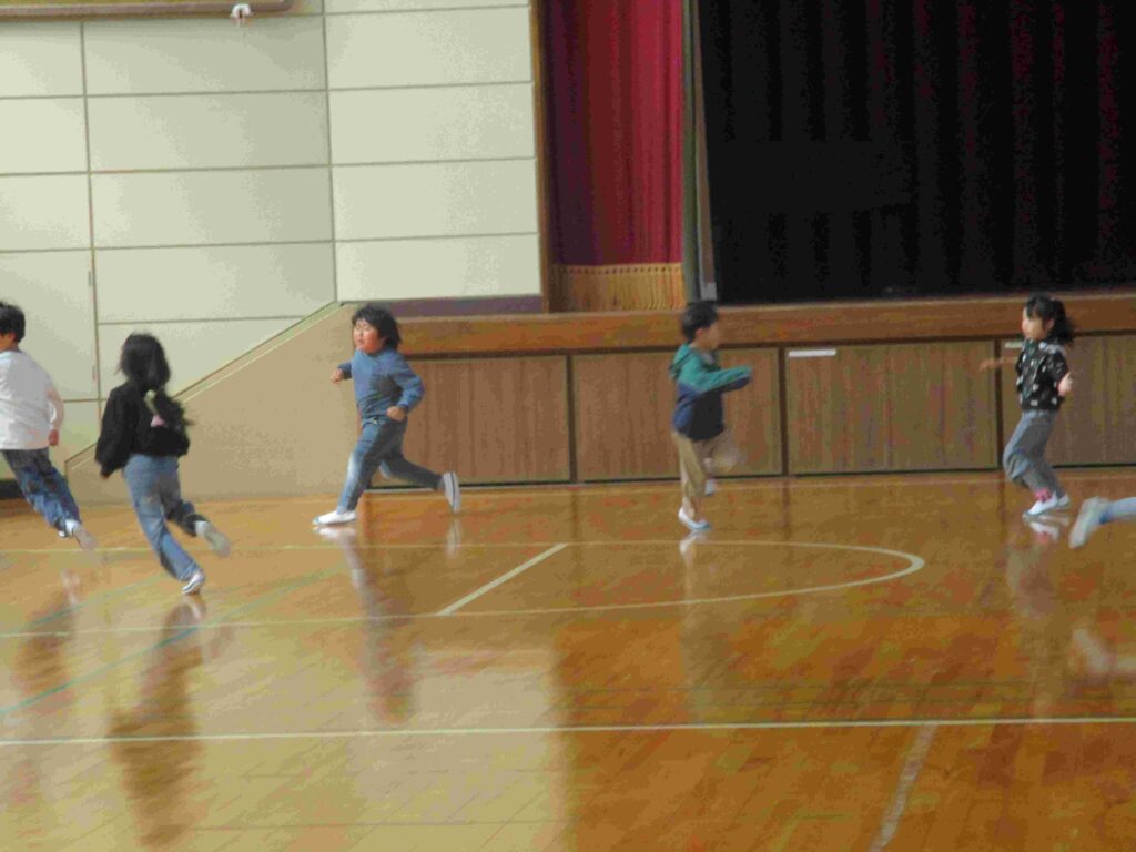 1年生はお楽しみ会で「どろけい」をしていました。全力で、体育館を駆け回っていました。