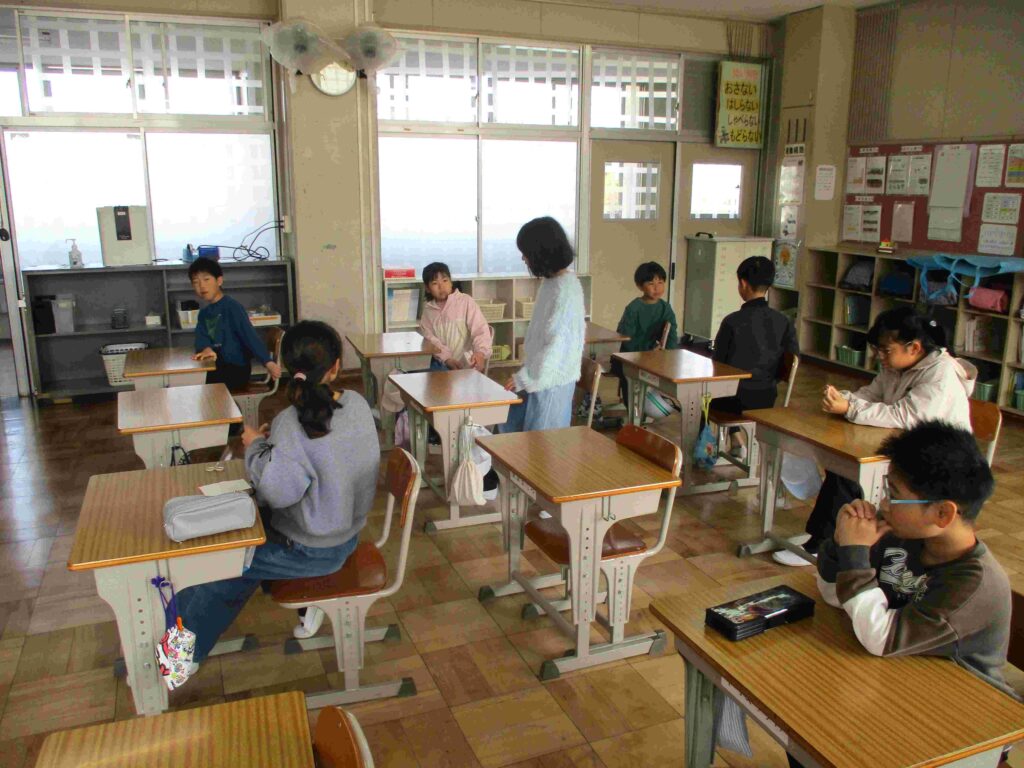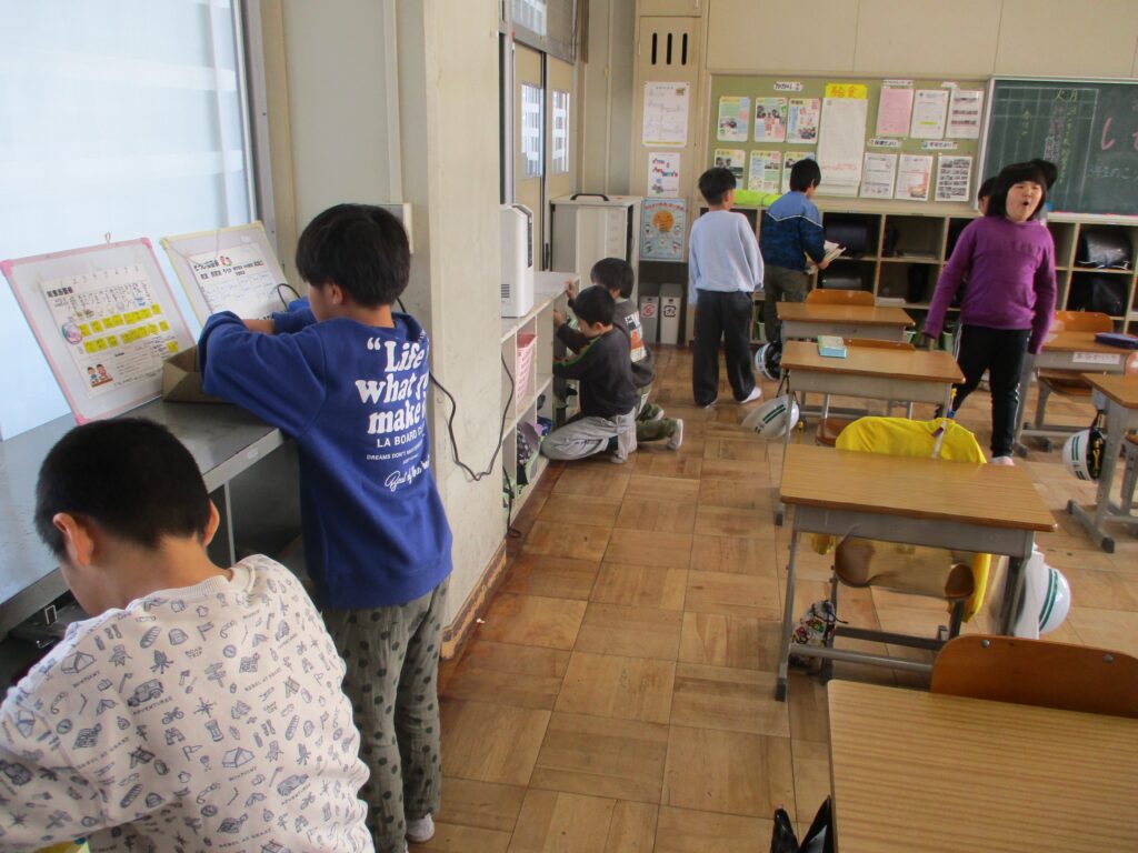 3年生は教室の片付けをしていました。棚を整頓したり、ホワイトボードをきれいにしたりしていました。