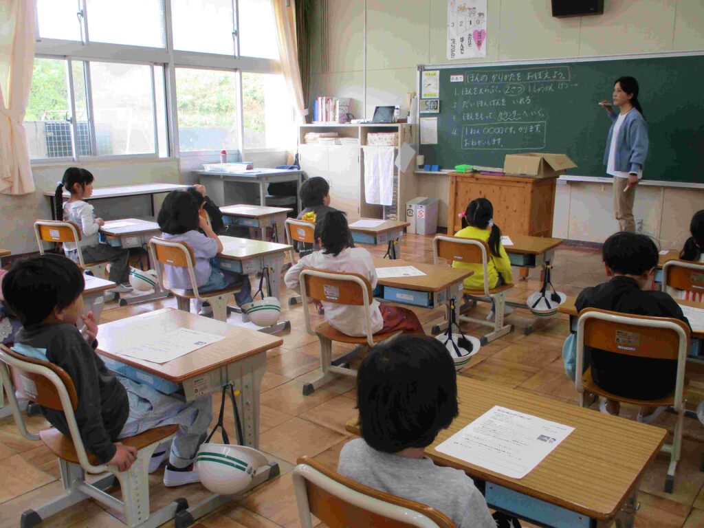 1年生は、図書館の本の利用と借り方を学んでいました。手続きの方法や図書委員さんへの伝え方を確認しました。「早く本を借りたいな…」と聞こえてきました。