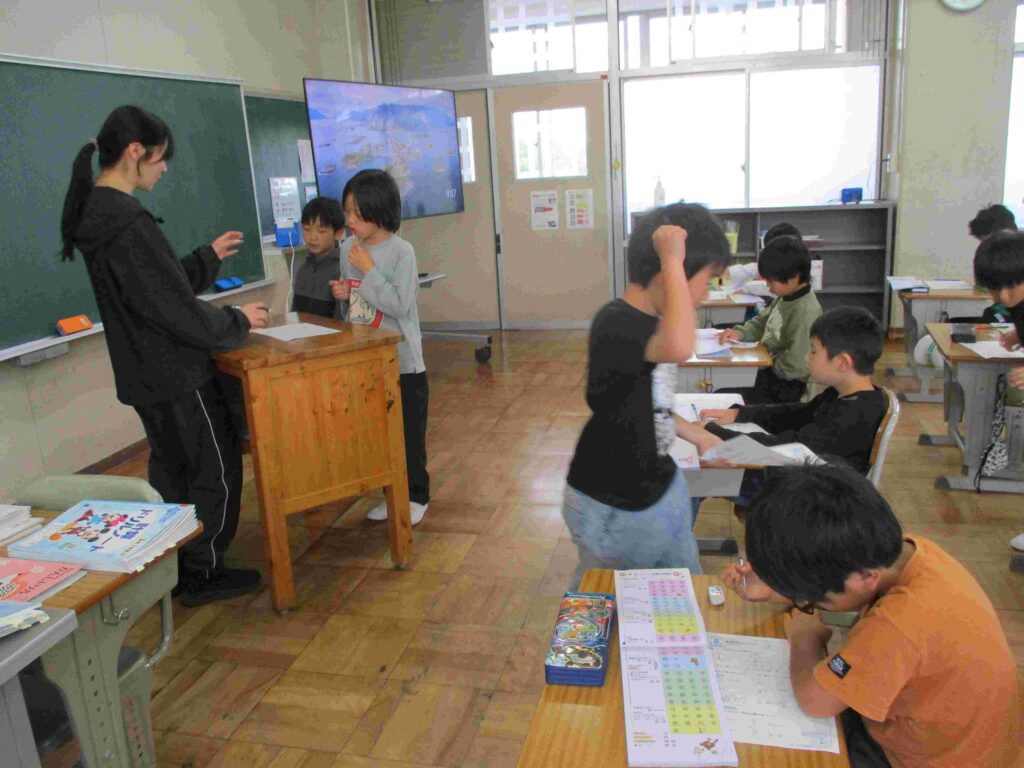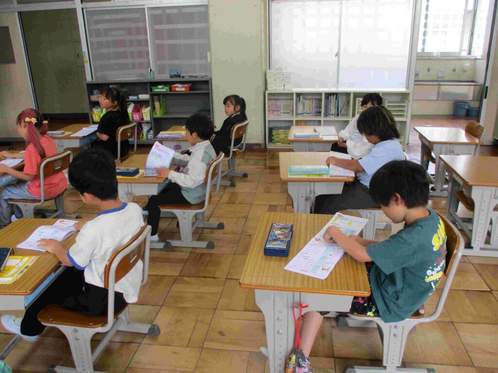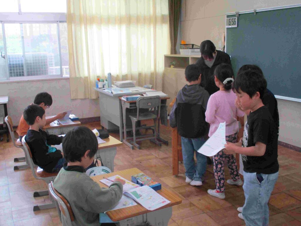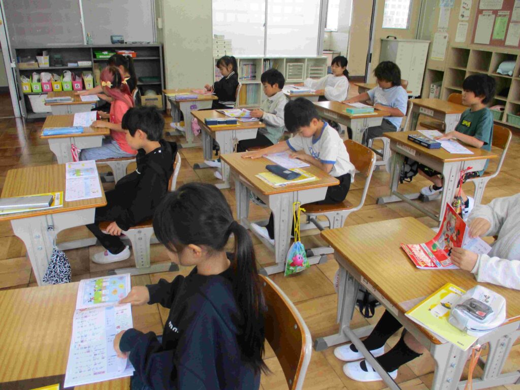2年生国語では、漢字ドリルに取り組んでいました。丁寧に書いて漢字を覚えていました。少し時間をおいてから書けるか試すと少しずつ確実に覚えていけます。コツコツが大切ですね。