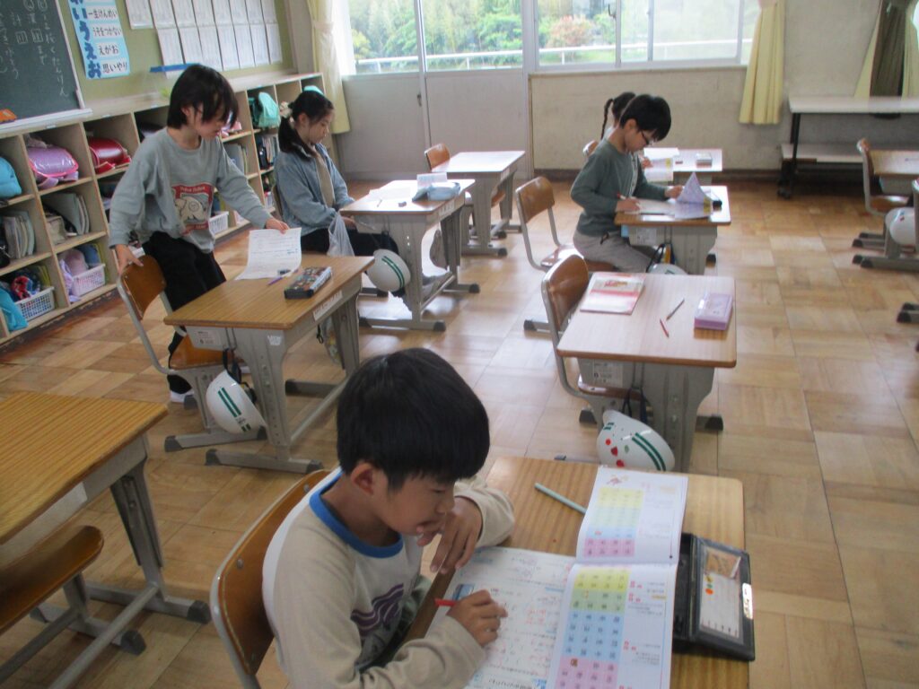 3年生国語では、漢字の小テストの直しをしていました。間違えた所を確かめて書き込んでいました。覚えて、確かめてを積み重ねていきます。