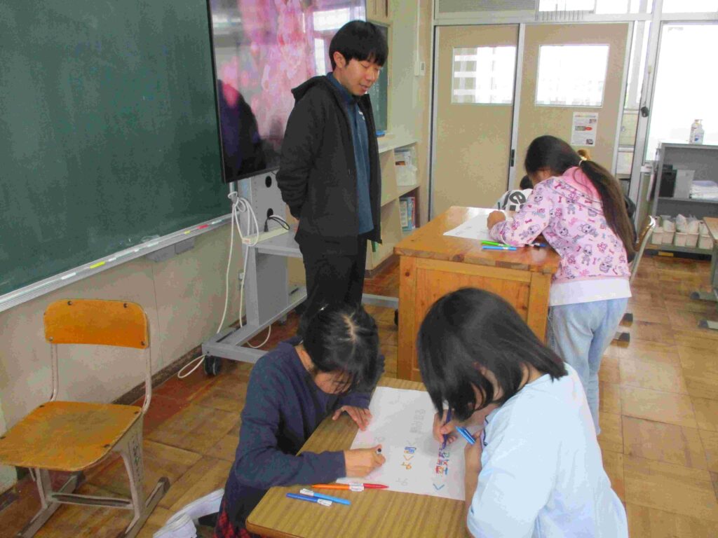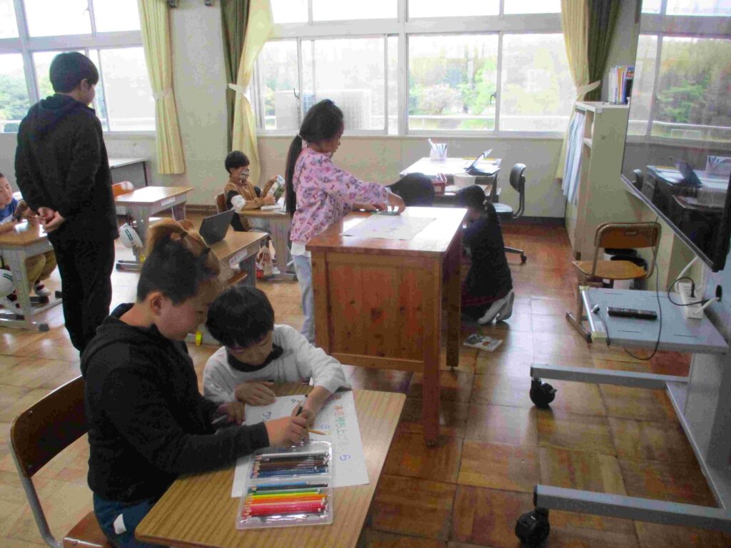 4年生学級活動では級訓の「協力」をデザインして掲示物を作っていました。教室に掲示し、共通の思いをもって「協力」を実現していきましょう。