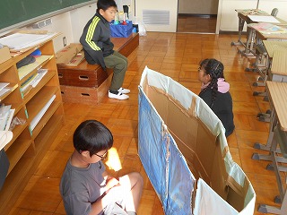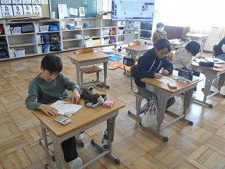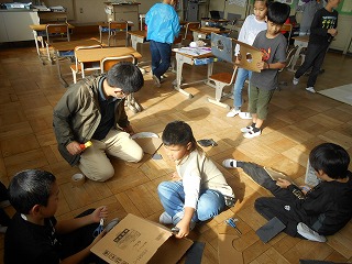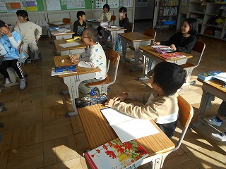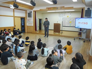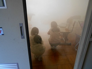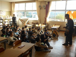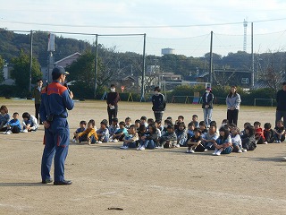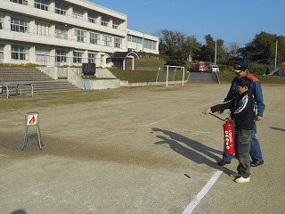 「お・は・し・も・ち」をしっかり守って、すばやく避難することができました。避難後、1、2年生は濃煙体験、3~6年生は消火器訓練を行いました。