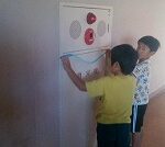 算数の授業では、紙テープをつかって大きさ比べをしました。 自分の使っている机の横の長さを基準にして、教室や廊下、図工室にあるものと大き...