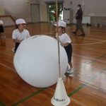 体育の授業では、運動会の練習をしています。 今日は大玉ころがしの練習をしました。 複雑な動きもしっかりと覚えて活動することができ...