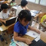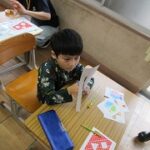 生活科の授業では、先週の虫取りの発見カードを書きました。 虫の体の色や特徴などをまとめることができました。