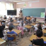 写真は1年生の外国語と4年生の総合(学習発表会練習)です。