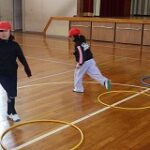体育の授業では、色々な体の動かし方を勉強しました。 けんけんぱをして、体のバランスを鍛えたり、じゃんけん列車をして、人の動きについてい...
