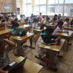 算数の授業では、紙テープをつかって大きさ比べをしました。 自分の使っている机の横の長さを基準にして、教室や廊下、図工室にあるものと大き...