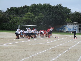 朝は20度と、以前に比べてとても涼しくなりました。写真は、5年運動会練習、