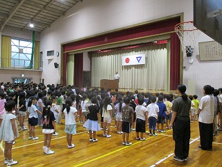今日は朝会がありました。よい姿勢でしっかり話を聞くことができました。