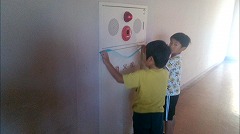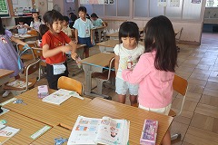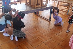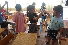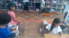 1年生「おおきさくらべ」 2025/09/30 学校の様子, 1年 算数の授業では、紙テープをつかって大きさ比べをしました。 自分の使っている机の横の長さを基準にして、教室や廊下、図工室にあるものと大きさを比較しました。