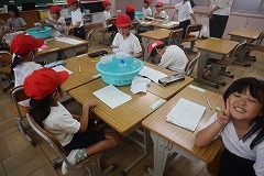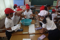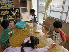 算数の授業では、水のかさくらべをしました。