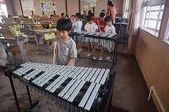 1年生「きらきらぼし」 2025/10/07 学校の様子, 1年 音楽の授業では、きらきらぼしの合奏をしました。 鍵盤ハーモニカ、鉄琴、タンブリン、トライアングル、鍵盤ハーモニカの5種類の楽器を使って、迫力のある合奏ができました、