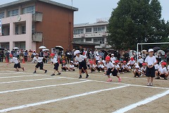 1年生「運動会」 2025/10/11 学校の様子, 1年 小学校の最初の運動会でした。 学年種目も徒競走も一生懸命取り組むことができました。 他の学年へ応援する声もしっかりと聞こえ、気持ちのよい運動会になりました。