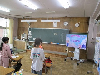 朝の会の様子です。朝の歌を歌っていました。さわやかで元気よく歌っていて、聞いていても気持ちよかったです。