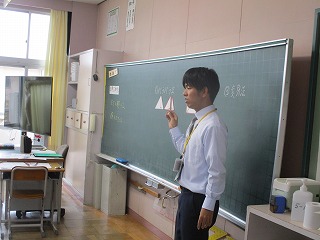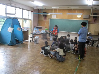 写真は、6年体育 5年算数(教育実習生研究授業)、5年生総合「防災教育」の様子です。