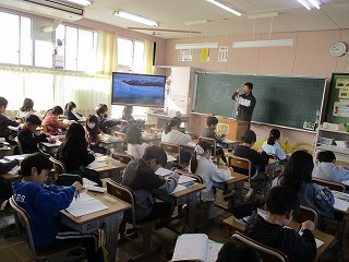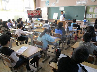 写真は4年生の朝の会と、3年生の算数の授業の様子です。