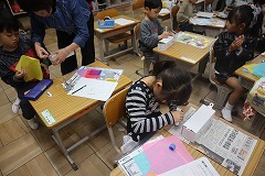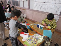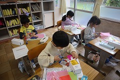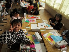 図工の授業では、スルスル糸をすべる作品をつくりました。
