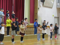 1年生「学習発表会」 2025/11/13 学校の様子, 1年 小学校最初の学習発表会でした。 運動会が終わってから一生懸命練習をしました。 ドキドキの中でスタートしましたが、練習の成果を発揮して堂々と発表ができました。