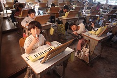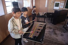 音楽の授業では、「きらきらぼし」を鉄琴と鍵盤ハーモニカで演奏しました。