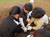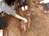 2年生 たくさんのサツマイモがほれたよ 2025/11/19 学校の様子, 2年 11月18日(火)と11月19日(水)に、生活科の授業で育てたサツマイモを掘りました。 土の下から出てきた大きなサツマイモに、子どもたちからは驚きや喜びの声が多く上がっていました。 ぜひご家庭でおいしく召し上がってください。