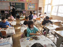 1年生「クリスマスリース飾り(1組)」 2025/11/27 2025/11/28 学校の様子, 1年 生活の授業では、あさがおやさつまいものつるで作ったクリスマスリースの飾りつけをしました。 色々な木の実や葉などできれいに飾り付けることができました。