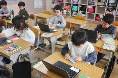 1年生「クリスマスカード作り(2組)」 2025/12/03 学校の様子, 1年 図工の授業では、クリスマスパーティーに向けて友達に渡すカード作りをしました。 おりがみやクーピーを使って、もらってうれしいカードを作れるようにがんばりました。