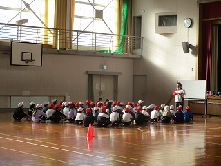 1,2組合同体育。説明を聞く姿勢も集中力も素晴らしいです。