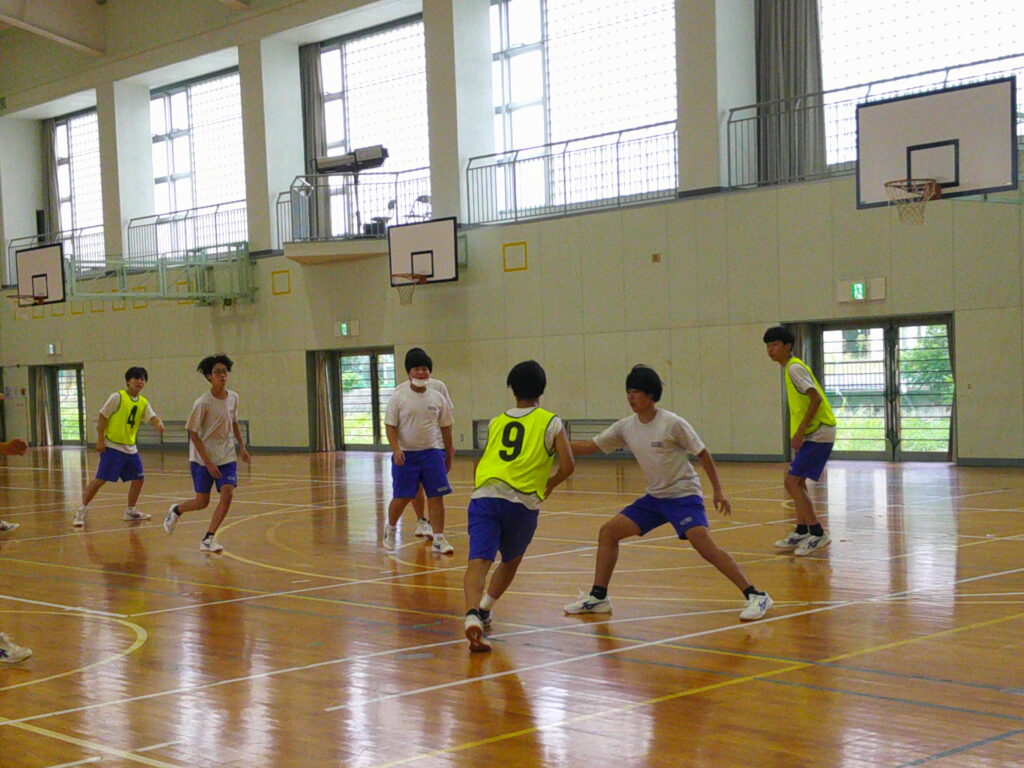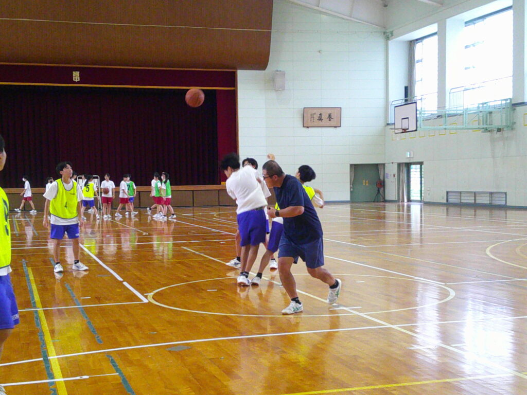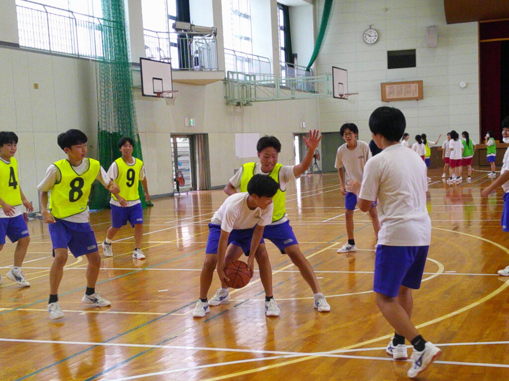 3年生のバスケは迫力が違います。うまく空間を見て、パスをつなげてシュート。ずいぶんうまくなっているなあと感心します。運動後の心拍数が120~165になることを目指しています。