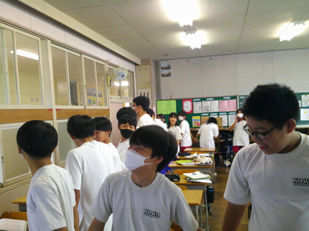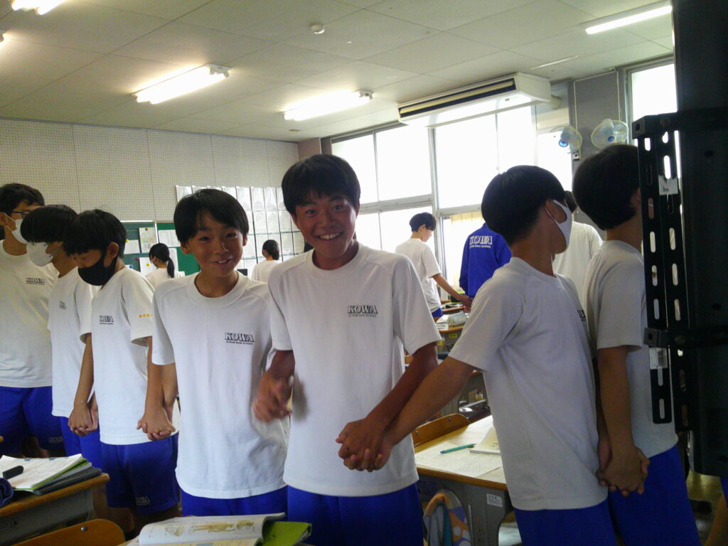 全員で手をつなぎ、今から理科の実験です。皮膚が刺激を受ける場合の反応を確かめます。1回目は、18秒。この秒数では、・・・。2回目は、10秒。自分たちで実験をして、学びを深めていく授業は最高です!
