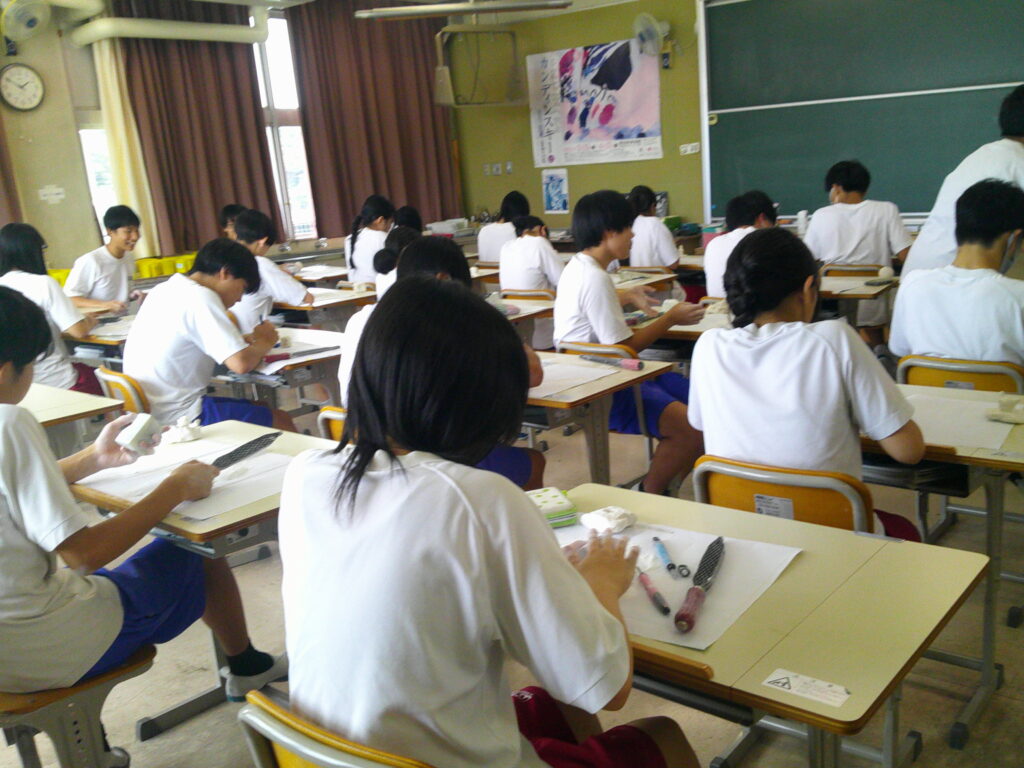 先にイメージしたものを粘土で作り、それを見ながら石を削っていきます。イメージしたものに近づけようと、どんどん削っていました。集中して目の前の作品に向き合える時間も大切です。仕上がりが楽しみです。