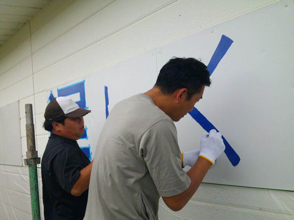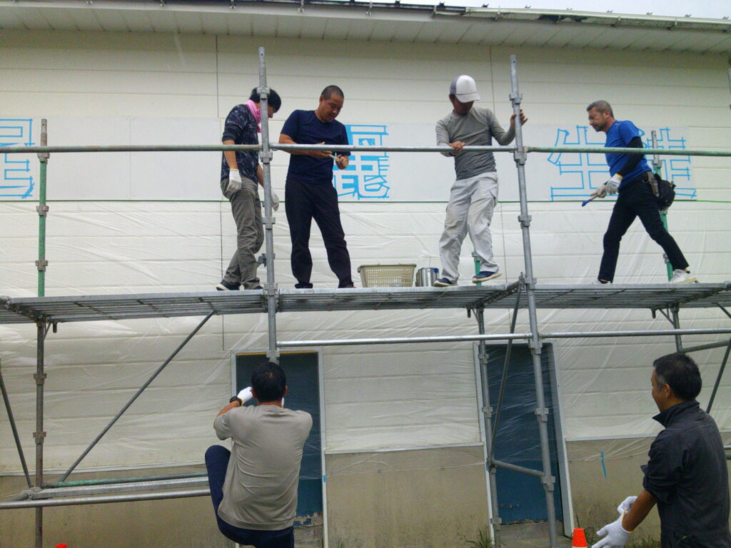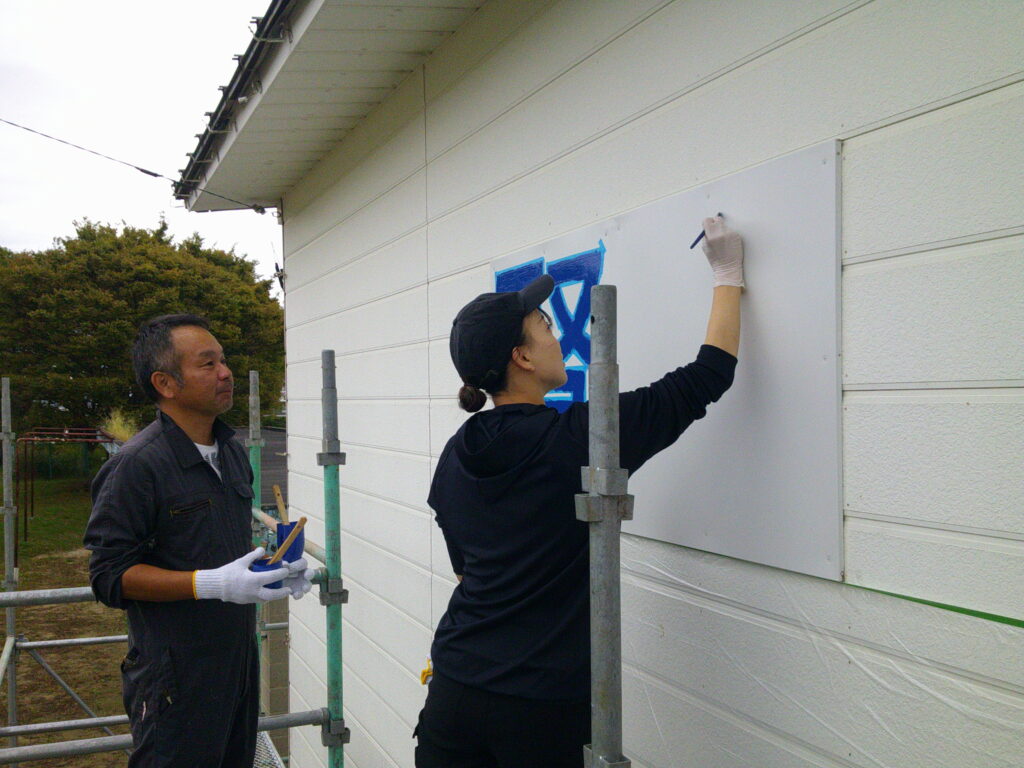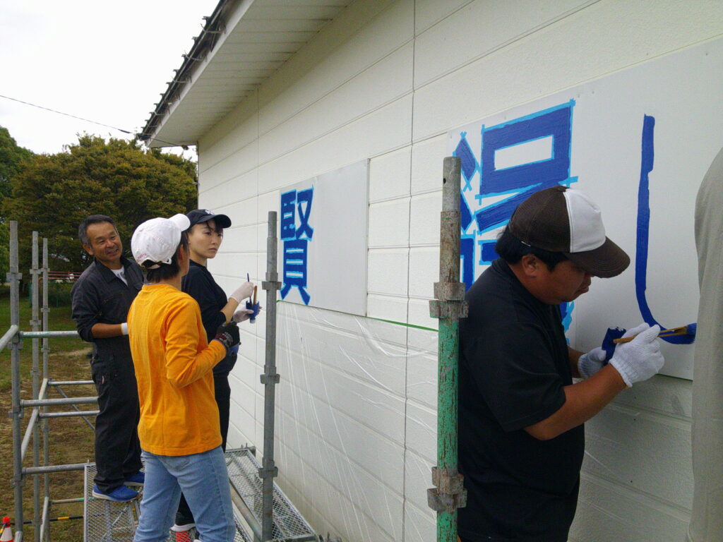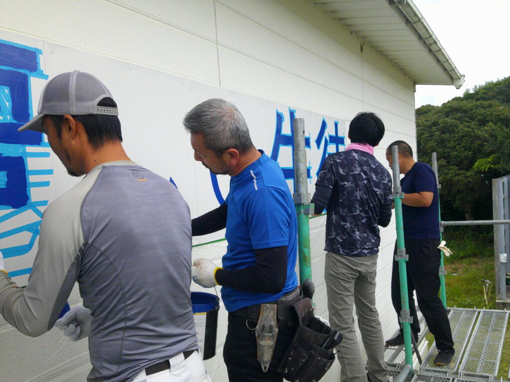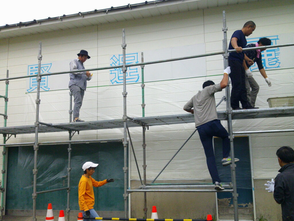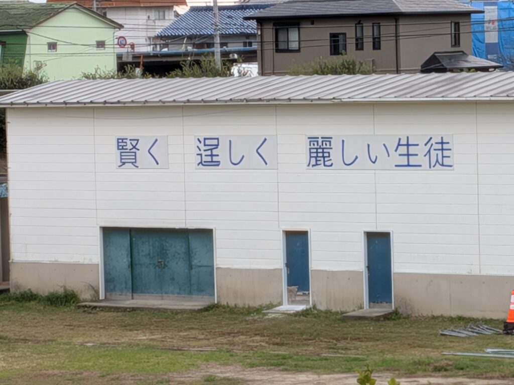 早朝より、保護者の方のお力で、校訓「賢く 逞しく 麗しく」の文字が完成しました。文字を青のペンキで塗っていき、マスキングテープを剥がします。そして、お借りしていた足場を取り外して作業が終わりました。3年前から思い描いていたことが本日実現できました。その思いを受け止めていただけたことに感謝申し上げます。本当にありがとうございました。