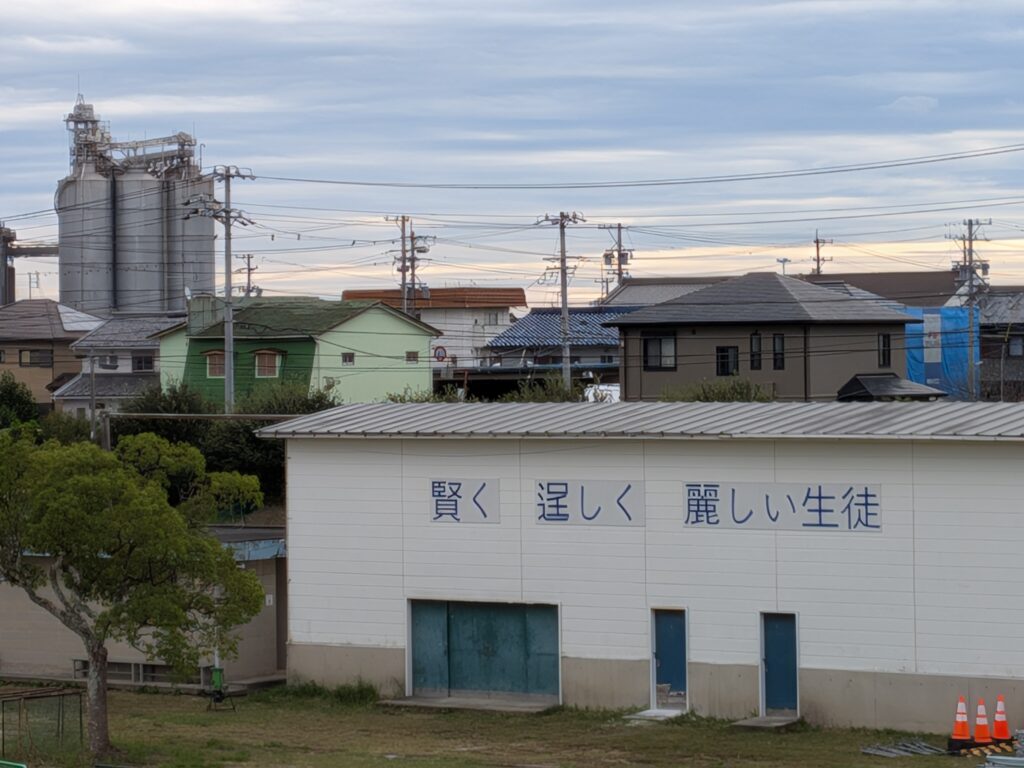 生徒の皆さんは、月曜日に楽しみに見てください。渡り廊下から見る景色も変わりました。秋の空の下に映える文字。気持ちいいですよ。