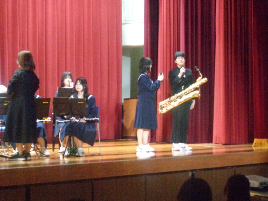 生徒がよく知っている楽曲を選曲してくれていました。ソロの音色は思わずうっとり。日頃の練習の成果が十分に発揮された演奏でした。素敵な演奏をありがとうございました。