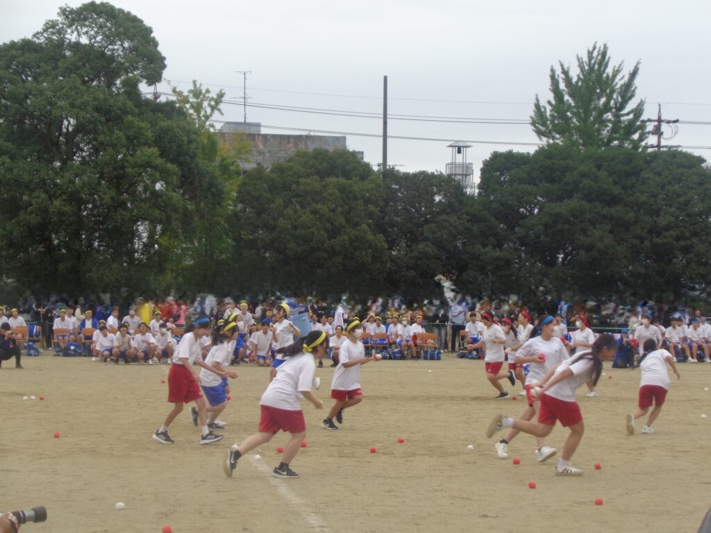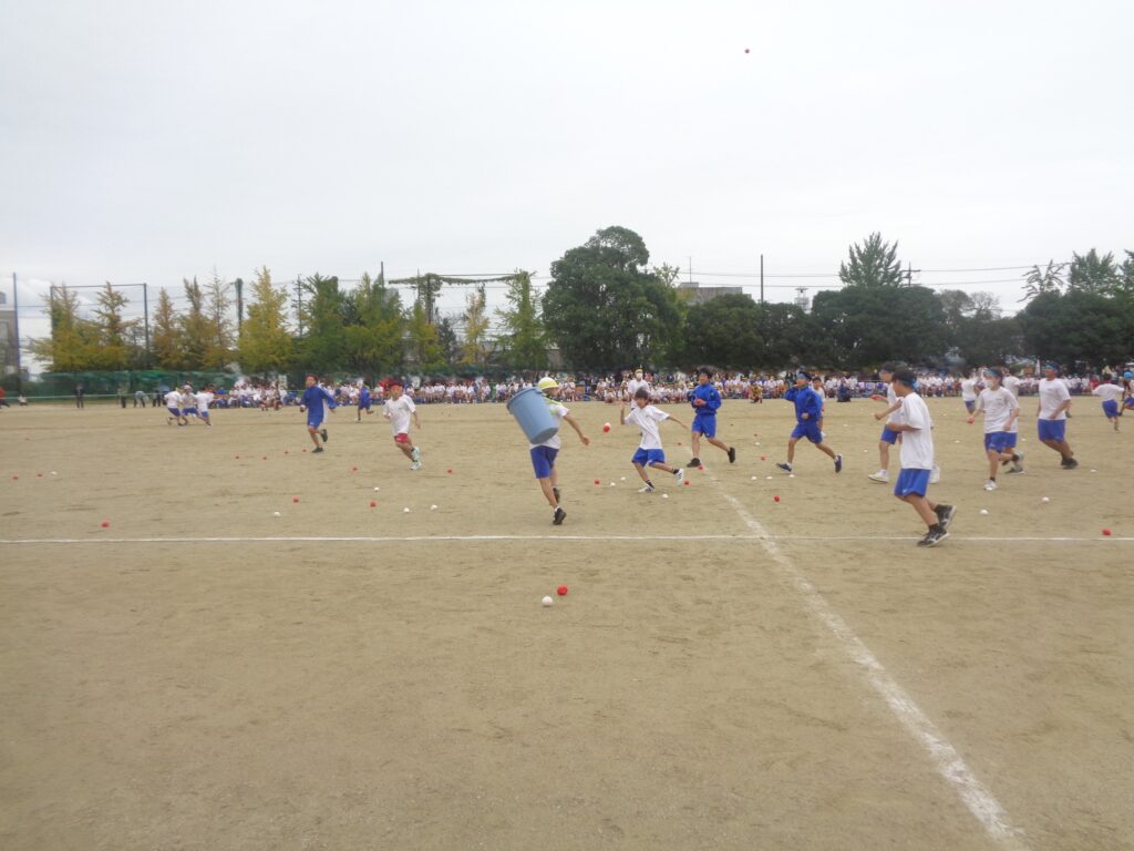 学年を超えたチームワークが試される縦割り種目!玉を追いかける姿に歓声が広がりました。