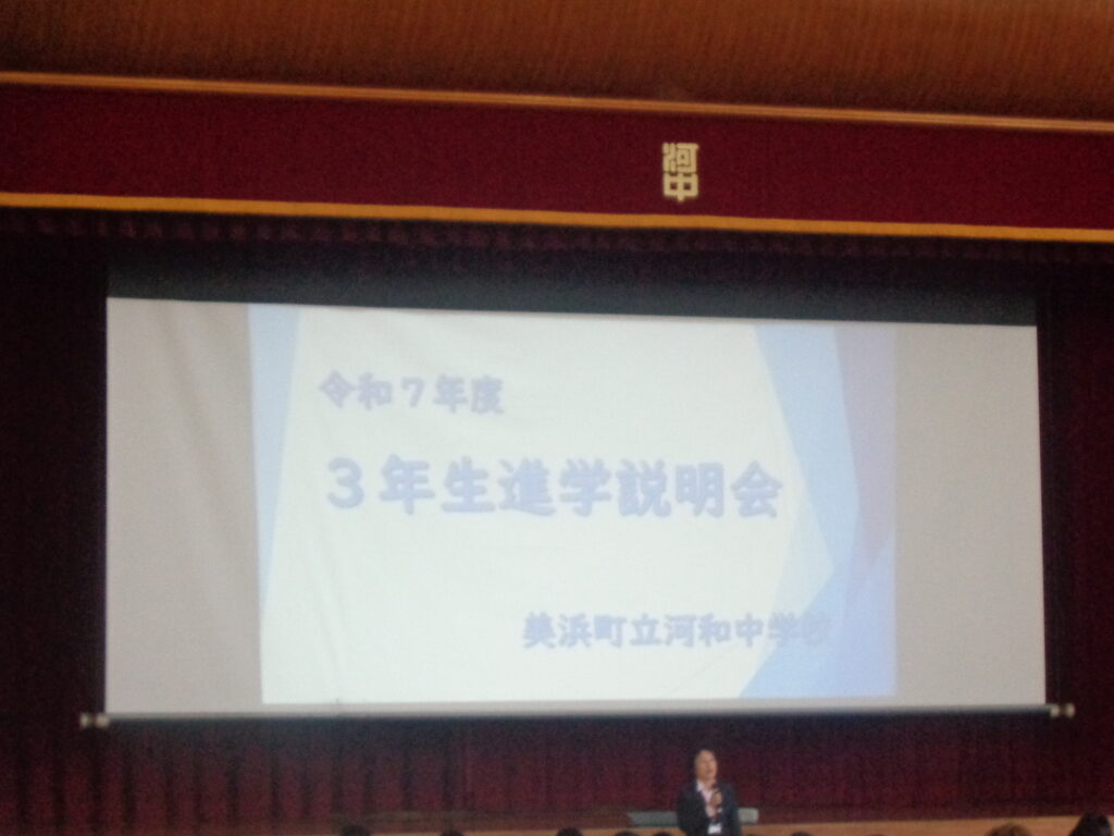 3年生は、進学説明会がありました。今後の日程や進学全般についての説明をさせていただきました。生徒の皆さん、自分で進路選択ができるように、見通しをもって、期限を守ることを意識しながら進めていきましょう。また、「健康・努力・相談」の三つを意識して、1日1日を大切に過ごしていきましょう。