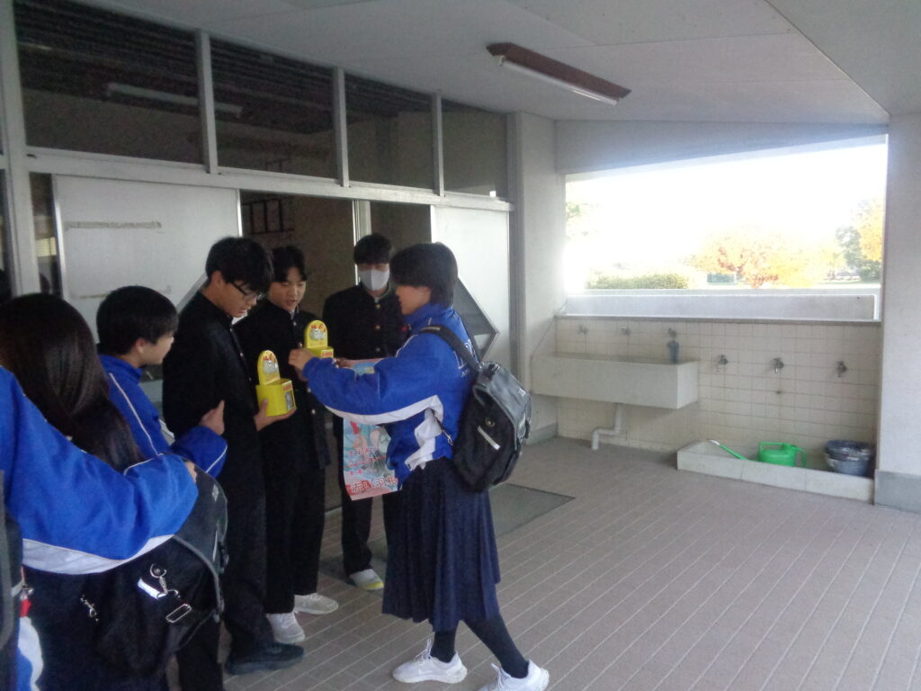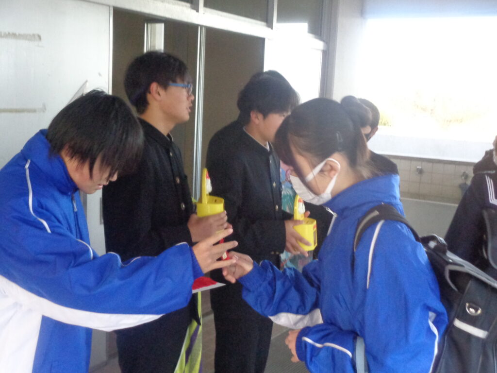朝の登校時間に生徒会による募金活動を行いました。本日最終日です。生徒たちは昇降口に立ち、元気よく挨拶しながら、温かい協力を呼びかけています。集まった募金は、支援を必要とする団体へ責任をもってお届けします。ご協力ありがとうございました。