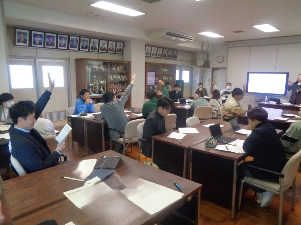 授業後に、教員としての資質能力の向上を目的に「相手に響くコミュニケーション研修」をテーマに研修会を実施しました。企業の方を講師にお迎えし、講義やワークを通して学びを深めました。生徒や保護者、教員同士がよりよく伝わり合うために、自分自身の特性を知り、相手の立場を意識した伝え方や聴き方について考える貴重な機会となりました。本日の学びをこれからの教育活動に生かしていきたいと思います。