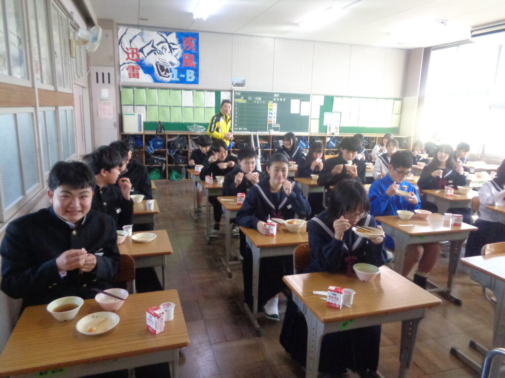本日より、3学期の給食が開始となりました。成長期の生徒たちが、毎日元気に学校生活を送れるよう、栄養バランスと安全に配慮した給食を提供してくださっています。感謝の気持ちをもって、いただきたいと思います。