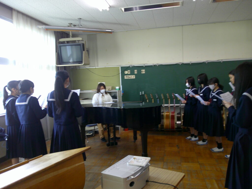 3年生の音楽の授業では、卒業式に歌う歌の練習が始まっていました。自分たちで決めた歌です。歌詞に込められた想いを大切にして、表現できたら最高です。これから、しっかりと歌い込んで聴かせてください。楽しみにしています。