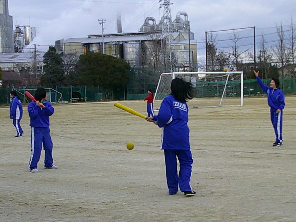 北風が冷たい中ではありますが、元気にソフトボール(ベースボール型)の基本技術習得に向けて取り組んでいました。打つ・投げる・捕る、どれも魅力のあるポジションです。寒い中でも、笑いがあるとホッとします。心まで温まります。