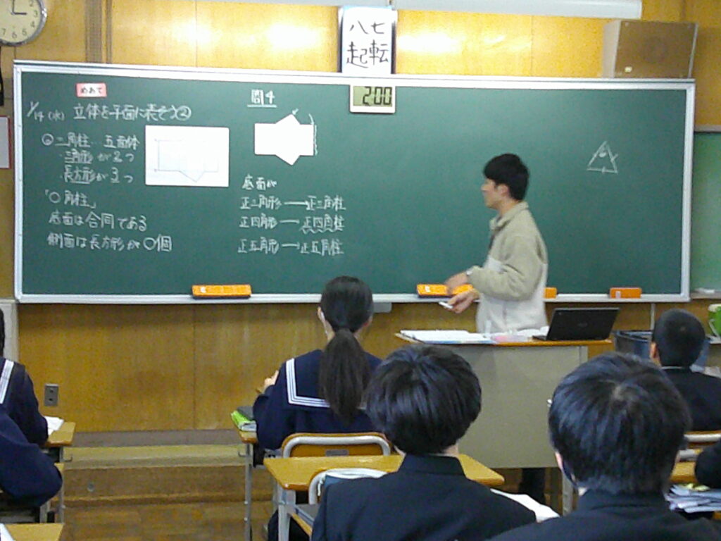角柱について学んでいました。側面の形や底面の形を一つずつ確認していました。また、直方体や立方体という言い方もすることも確認していました。既習までの知識やこれまでの経験と結びつけて学んでいくと楽しそうです。