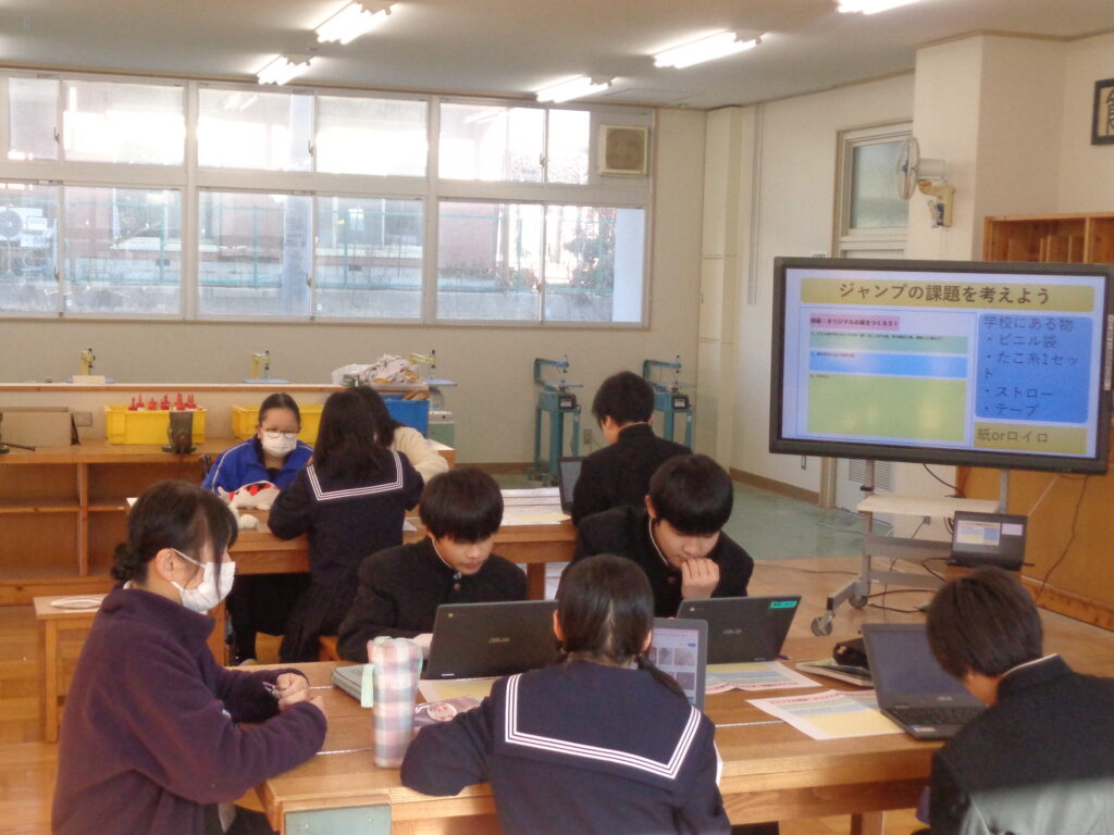 前回の行った凧揚げの反省を踏まえて、より高く跳ぶ、オリジナルの凧作りに向けた構想を考えました。前回の反省をしっかり生かして、何が必要なのか、どんなデザインの凧を作るのかを対話しながら真剣に考える姿が見られました。