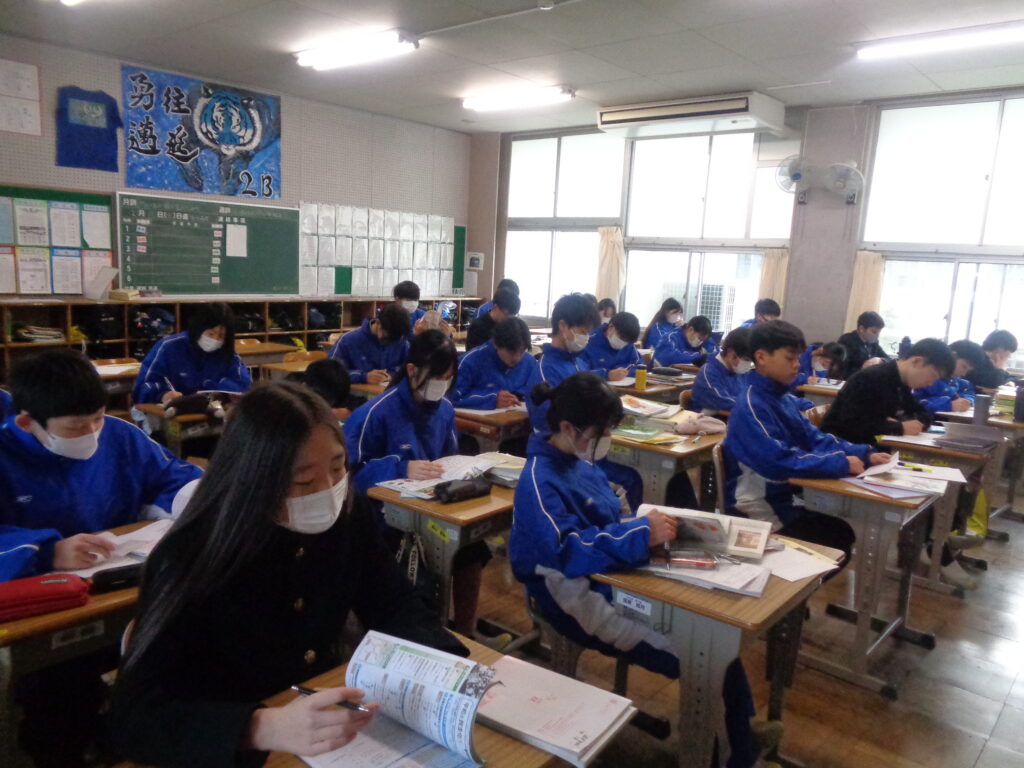 テスト週間も、いよいよ最終日を迎えました。今朝は、静かで引き締まった空気の中、生徒たちが登校してきました。校長が校門で立哨し、生徒一人一人と挨拶を交わしました。気持ちのよい「あいさつ」は、一日の始まりを明るくし、心を整えてくれます。校内では、それぞれが自分の目標達成に向けて最後まであきらめずに挑戦しています。テストは結果だけでなく、そこに至るまでの努力や姿勢も大切です。明日からは、これまで積み重ねてきた力を存分に発揮してほしいと思います。生徒の皆さんの健闘を心から応援しています。