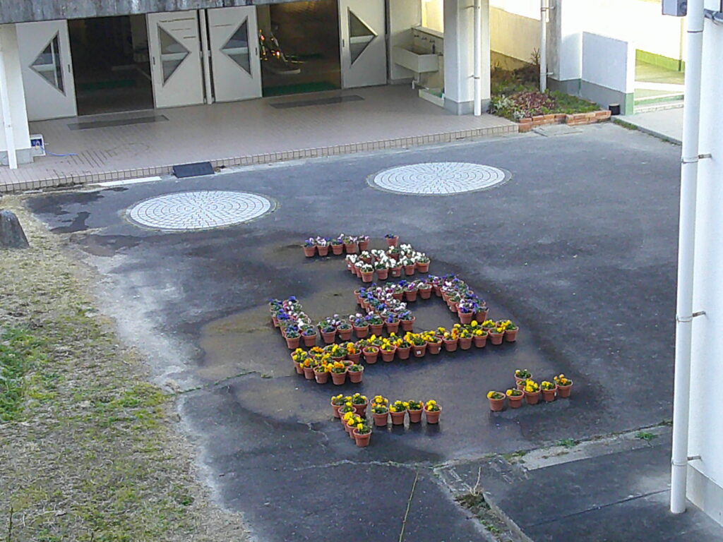 卒業式までのカウントダウンが始まりました。昇降口付近には、咲き始めたパンジーを使ってカウントダウンが始まりました。上から見ると、数字がはっきりと分かります。1日1日を大切にしていきましょう!